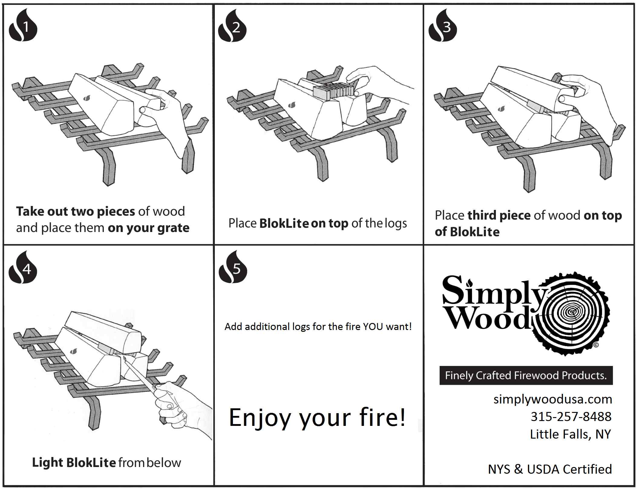 Lighting a fire has never been easier! No kindling or paper is needed with our fire starter block. Our slogan is "If you can light a candle, you can have a fire".